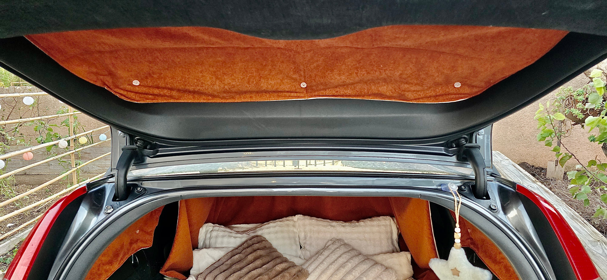 - 1 curtain to separate the front and rear of the car, to install just after the front seat to garantie you a perfect weather and light insulation.