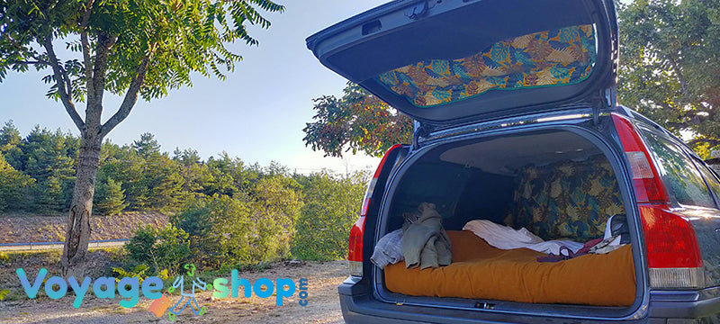 When you'll park the car to visit a nice place, to walk on the countryside, or to enjoy surfing on the beach, nobody will guess that your Volvo V70 is a little camper van. Our curtains set are 100% blind and provide intimacy and security.