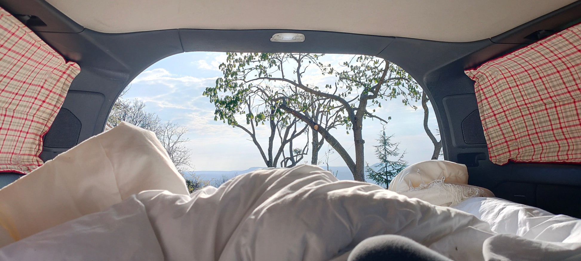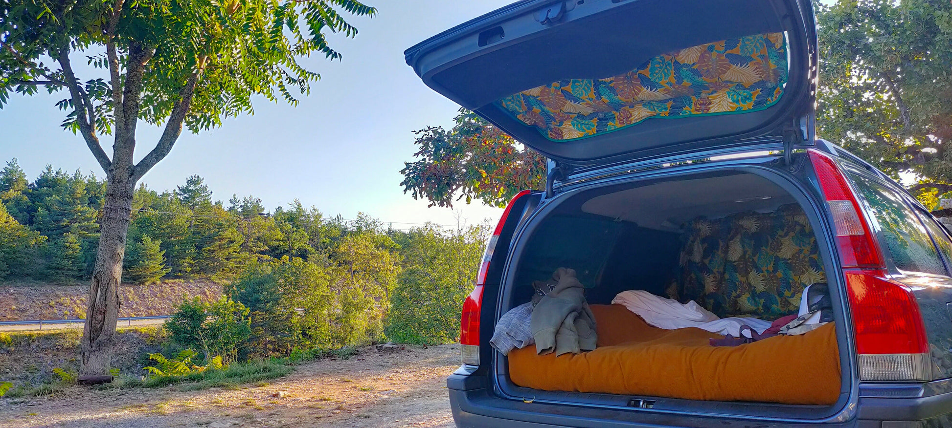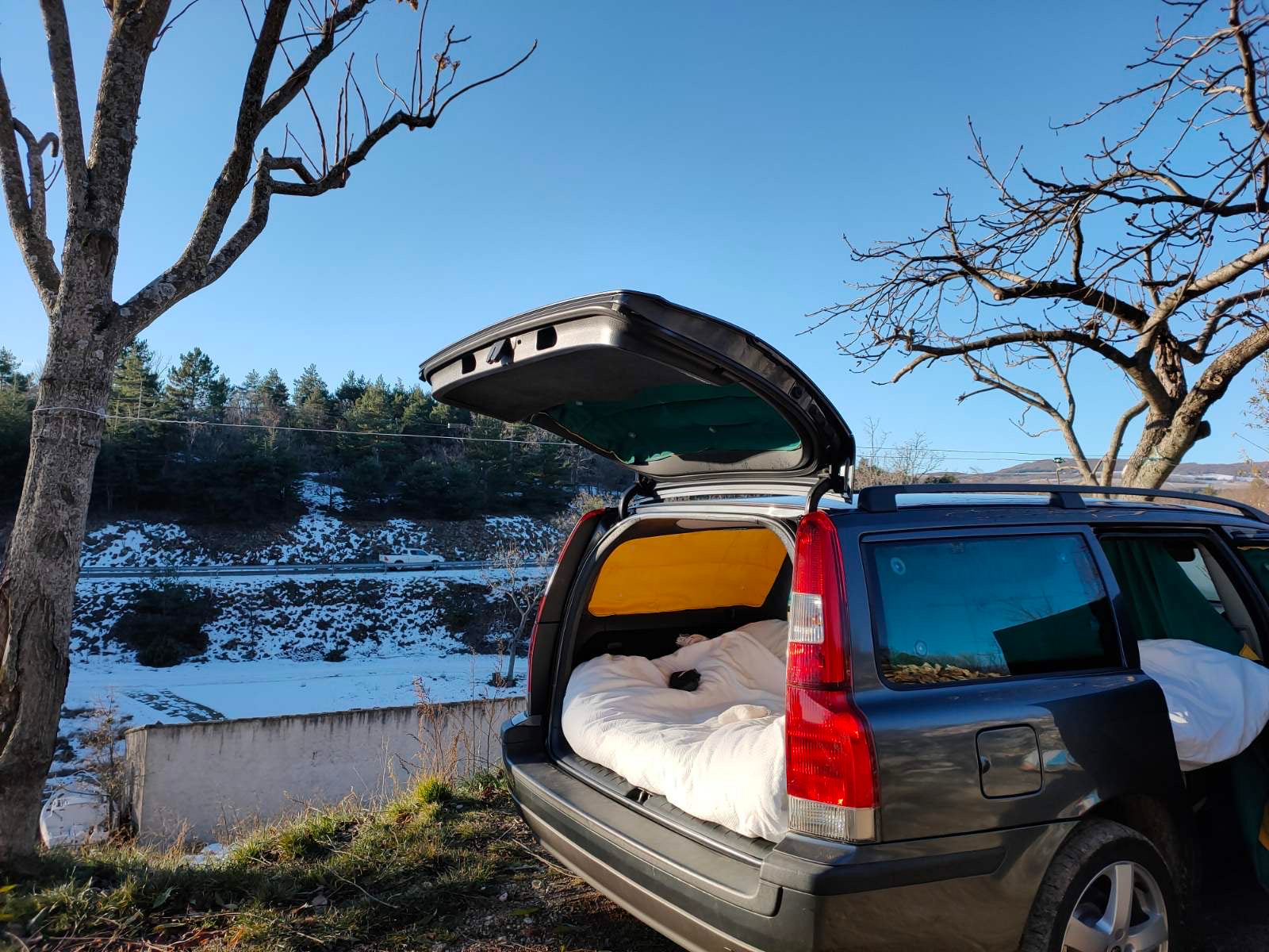 3- A comforter, again from Ikea, will cost you around 80€, more than enough for both summer and winter. Don't forget that your Volvo V70 mini camper is insulated against noise and bad weather. That's quite an advantage over tents and roof tents.