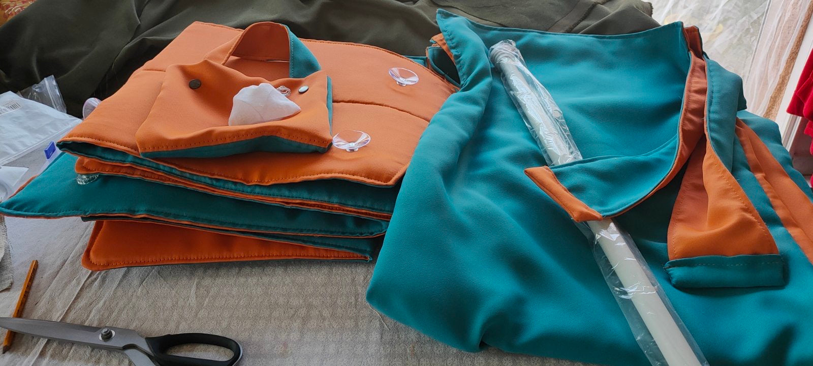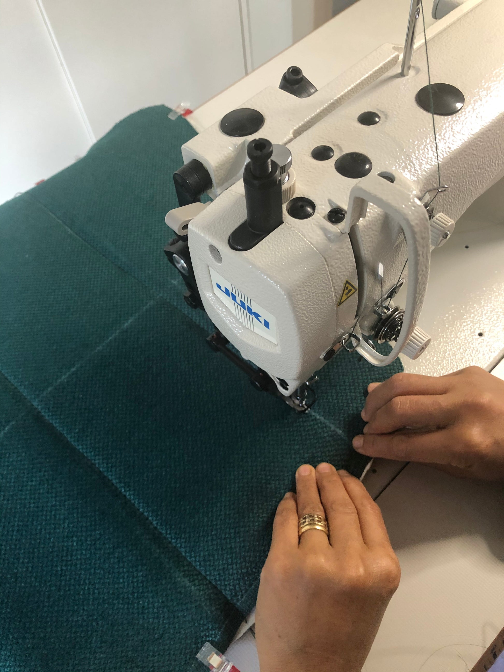 It's 100% hand made at home in France by us (Anna), we use 2 layers of specific blind fabric (see picture below), this fabric is made also with 3 layers of thread, 2 with main color and one black in the middle. In the center we add a coat of insulation, (see picture). Everything is sew with a Juki professional sewing machine.
