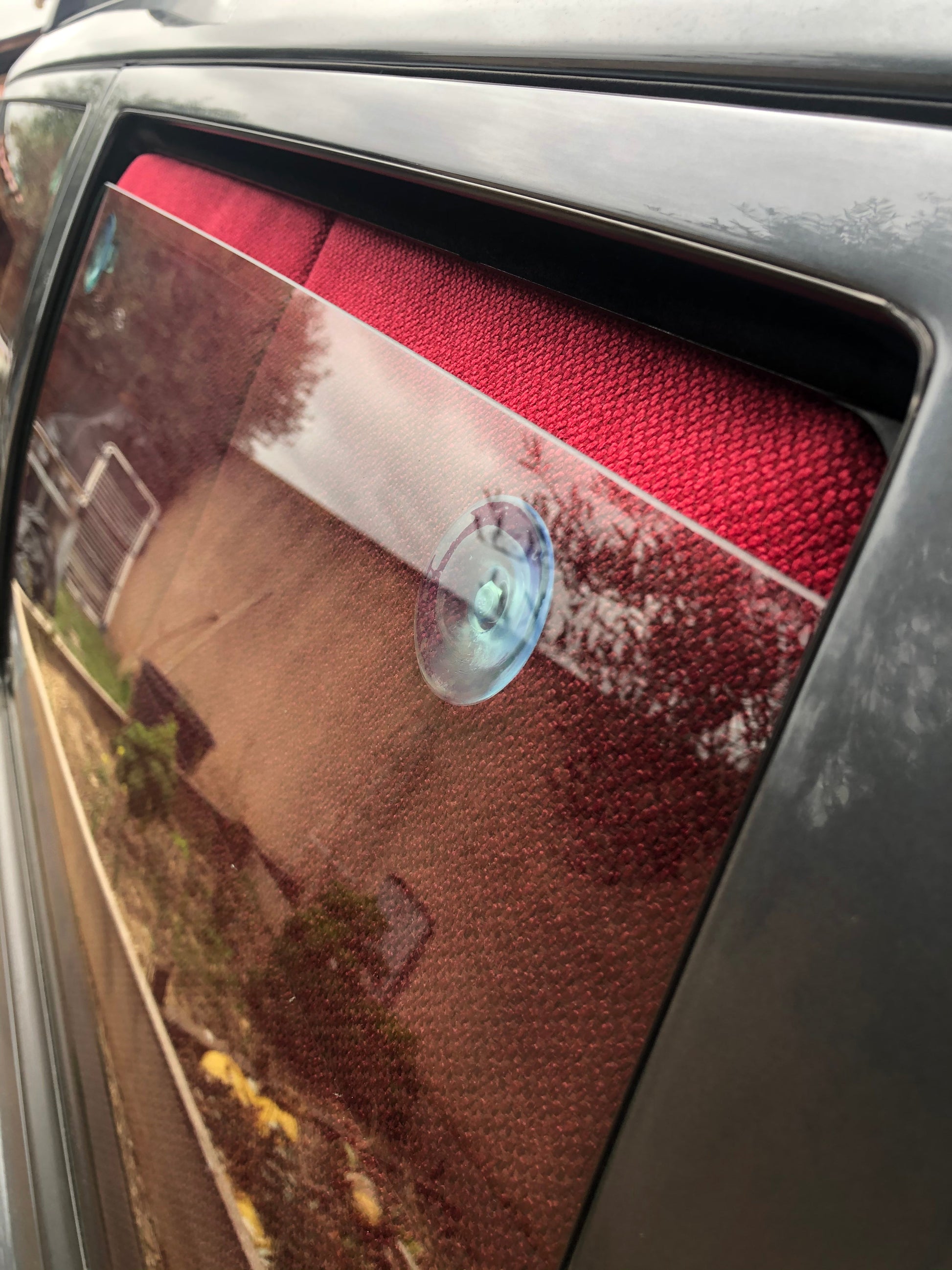 The settings of the succion caps on the curtains are made to be abble to keep open a little the rear window while it's still very dark inside (see picture).